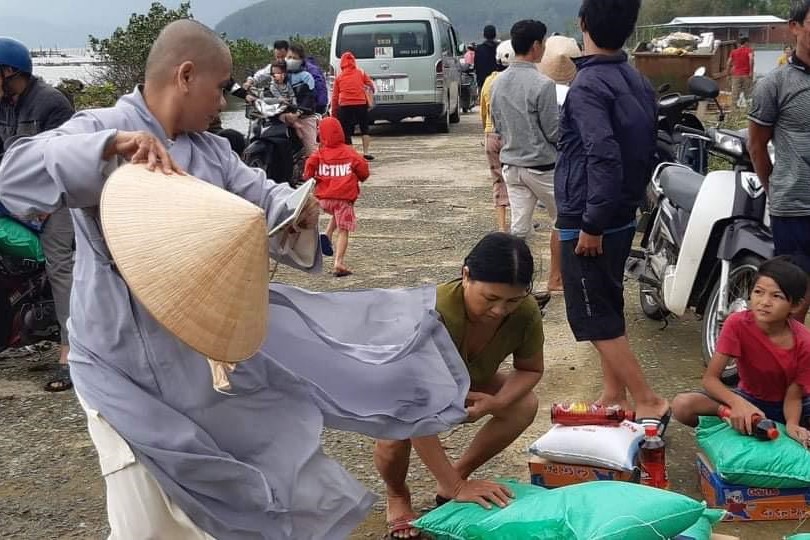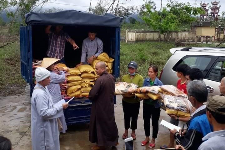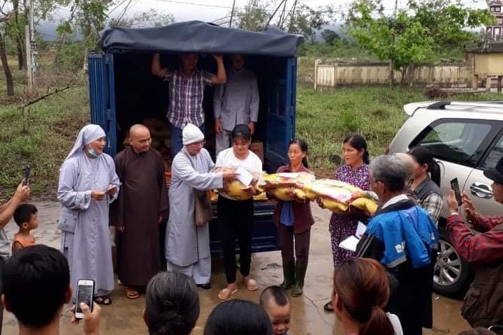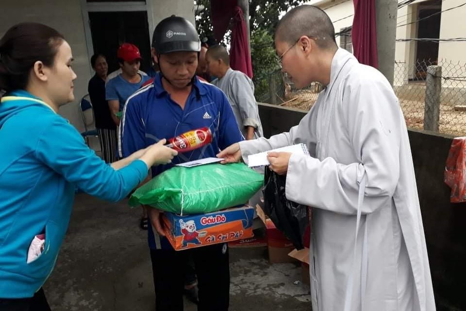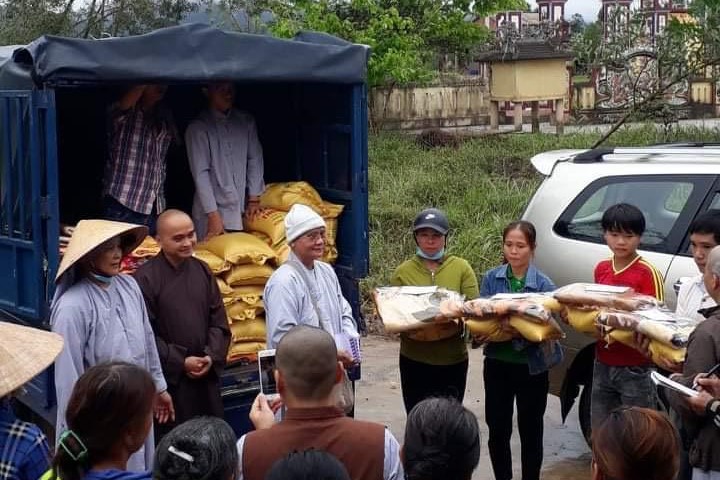 Durch unseren Spendenaufruf und mit Hilfe des ansässigen Mönchen Vo Thi Quyen und weiteren Ordensleute halfen wir den Betroffenen. Angepasst an die Situation stellten wir Hilfspakete vor Ort zusammen und verteilten diese im Dorf Quan Tri an die Hilfsbedürftigen.